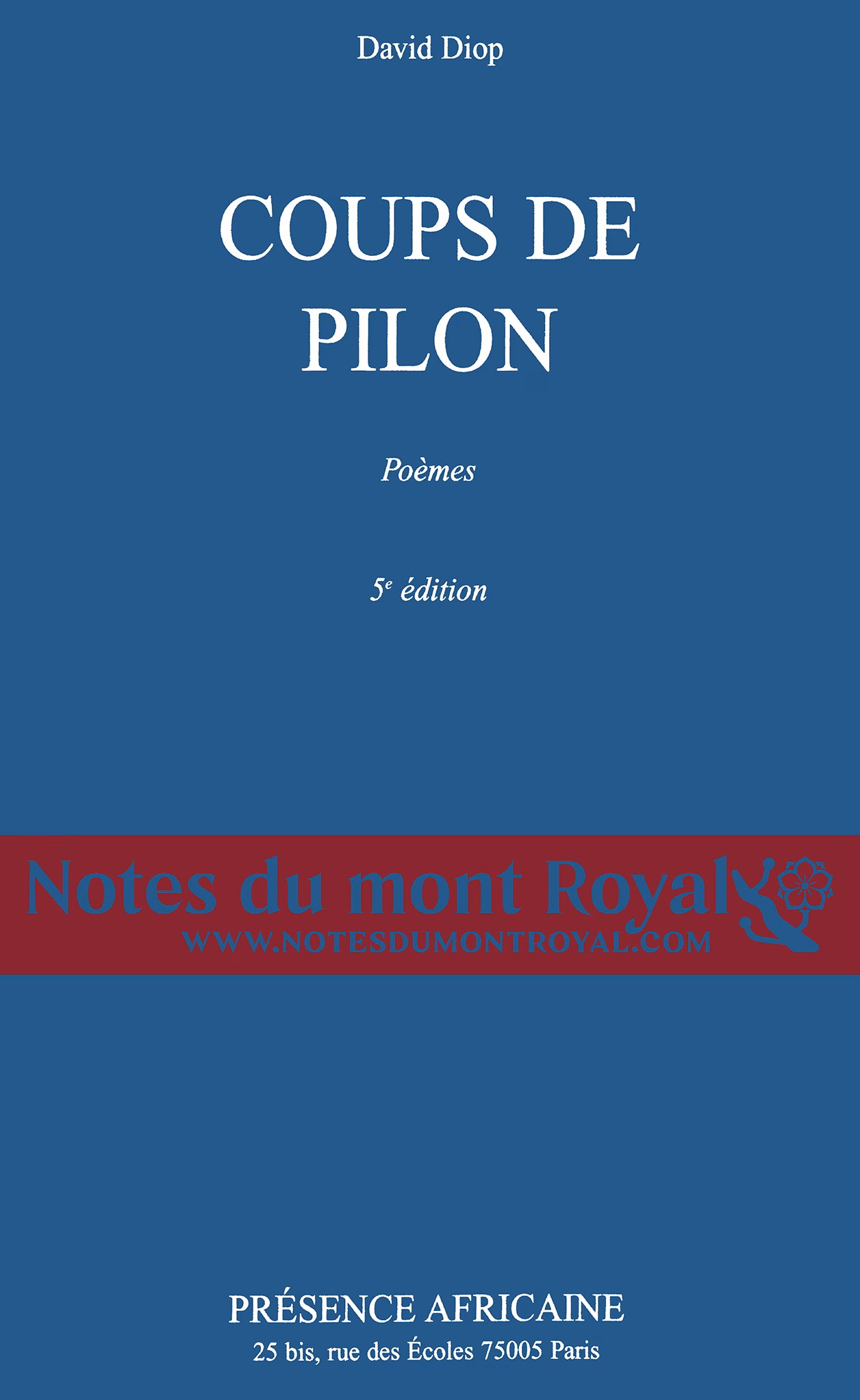 Sur ton front serein de civilisé »Diop, David, Coups de pilon, Paris : Présence africaine, 1973.